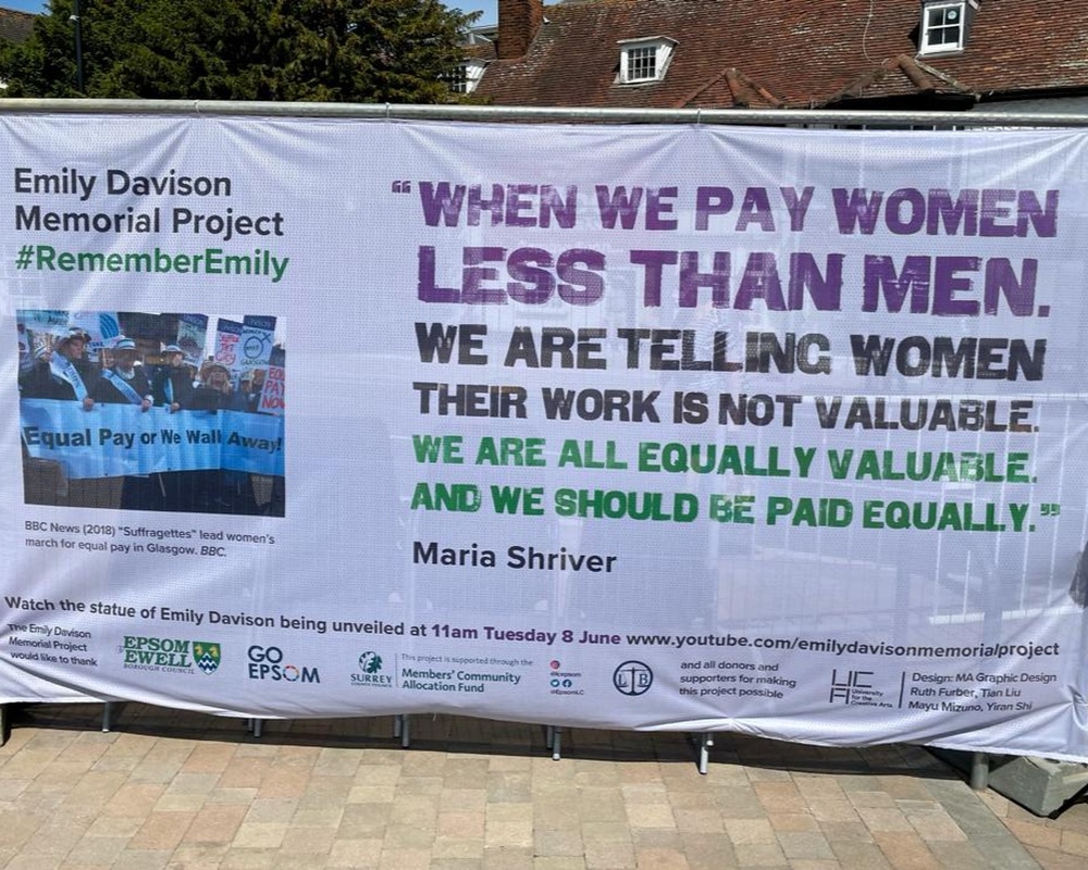 We were pleased to be part of the celebration to unveil the Emily Davison memorial in Epsom Market Place on 8th June – a date chosen to commemorate the date of her death in front of the King’s horse at the Epsom Derby in 1913.